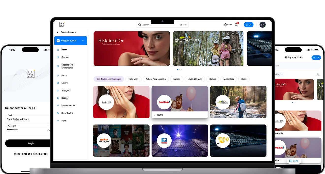 Uni-CE a été conçu pour simplifier l’accès aux avantages CSE. La plateforme est intuitive, rapide, et pensée pour une navigation fluide depuis un mobile comme depuis un ordinateur. Les salariés peuvent explorer les offres, acheter leurs billets, télécharger leurs e-tickets ou activer leurs réductions en quelques secondes, sans passer par une multitude de sites externes.